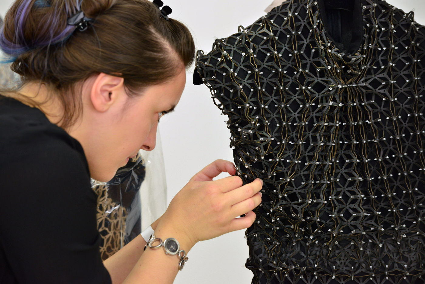 The collaboration has been growing in momentum with Iris van Herpen’s launch of ready-to-wear lines of clothing that translates the radical experiment of her haute couture explorations into comfortable, highly finished form-fitting clothing. Critics acclaimed the new work, ‘The most powerful fashion mix of nature and technology that I have ever seen’- Suzy Menkes, Vogue; ‘Piece de Resistance’- Joanne Furniss, Style.com.