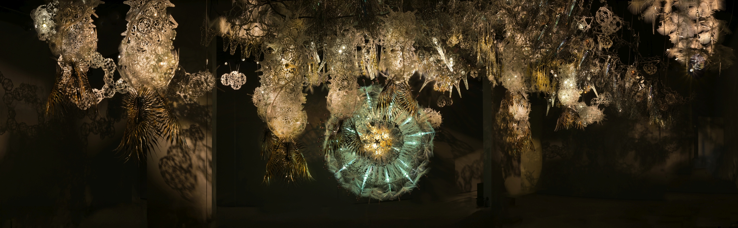 Delft Science Centre, Living Architecture Systems Group (LASG) and Philip Beesley Studio Inc. (PBSI) have brought an immersive environment that functions as a public sculpture and a testbed for evolving research to TU Delft. This multi-year project frames a permanent installation of public art on the campus of TU Delft, presented in cooperation with the municipality of Delft, TodaysArt, numerous artists from the Netherlands and Canada, and educators in STEAM. This project is working in close collaboration with TU Delft’s Architecture and Engineering departments and multiple Canadian research contributions. A new LASG sculpture and testbed will be installed at the entry of the new Science Centre facility. The project will act as a public beacon that gathers the public, expressing a sustainable, inclusive vision of future design. This building provides a public face to the University, located at the boundary of the Delft Campus with the city. This site provides strategic connections to the campus and city. The location also relates to a large cluster of experimental architectural structures featuring next-generation construction, alternate energy sources and sustainable material systems. The prominent central location will present views to the exterior that reach out and along the green lawn that connects the Science Centre to the main circulation spine of the University and areas of the city of Delft. To the interior, the installation will lead to areas for evolving student design explorations and additional workshop-based activities.