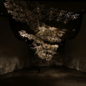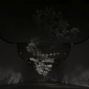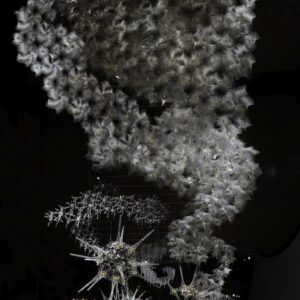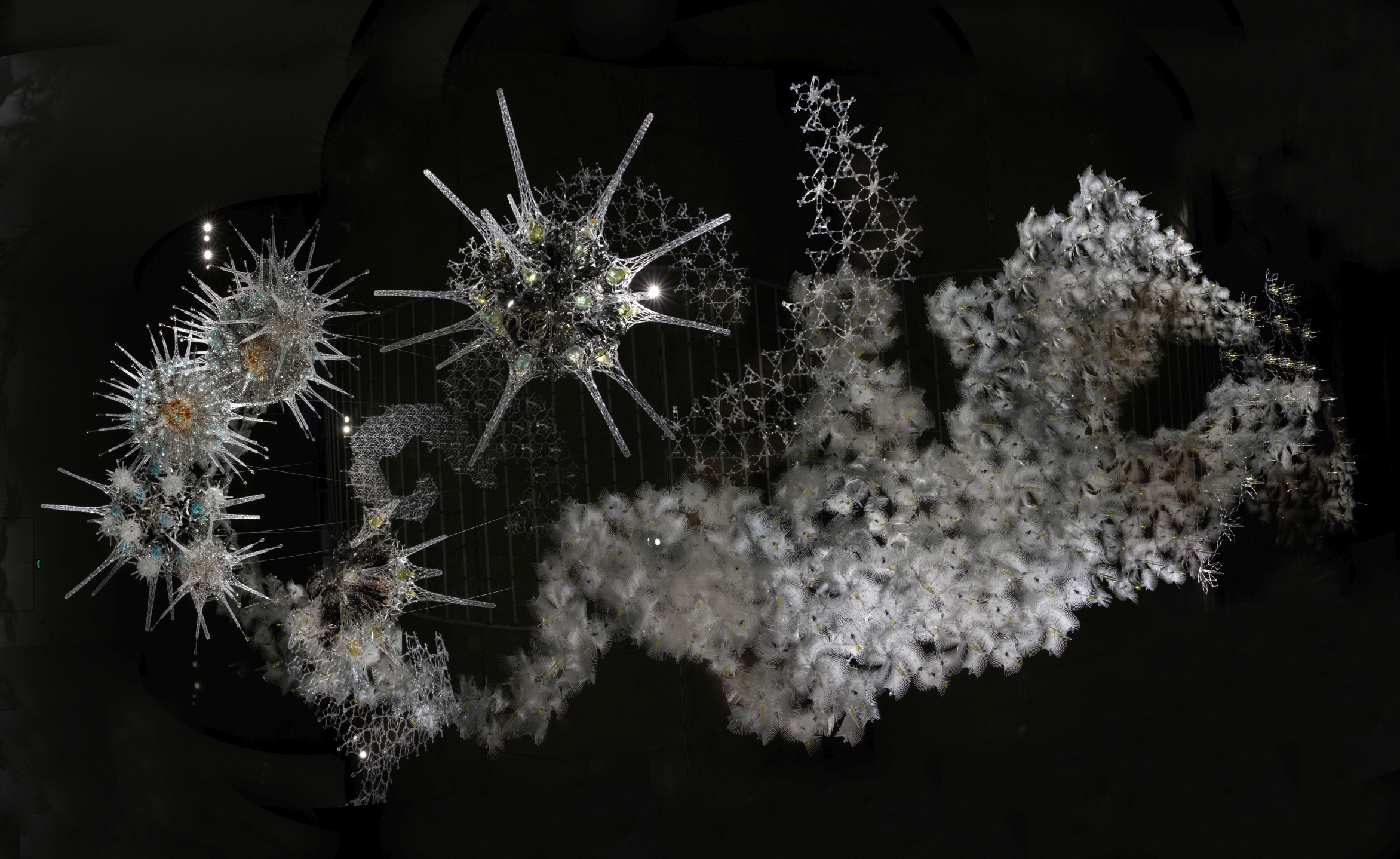This is a precarious gathering space. Constellation offers a deep vision for inclusive, unapologetically fragile open gathering. Beesley and his collaborators offer a vision of a transformed world where future architecture seeks communion with plants, animals, and inert matter alike. The extraordinarily complex interior worlds of this constellation of cells offers an immersive vision of new life arising. The artist asks: can a new architecture based on dissipative natural forms, such as fragile snowflakes and shifting clouds, create buildings that are both sensitive, self-renewing, and resilient?